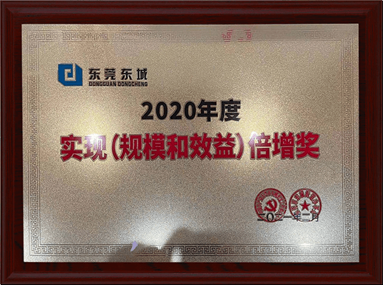 廣東東莞“2020年度規模和效益倍增”獎第三名。